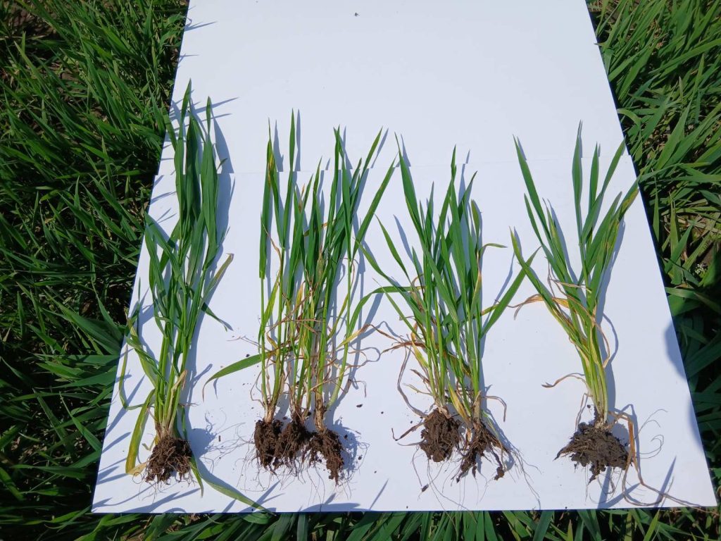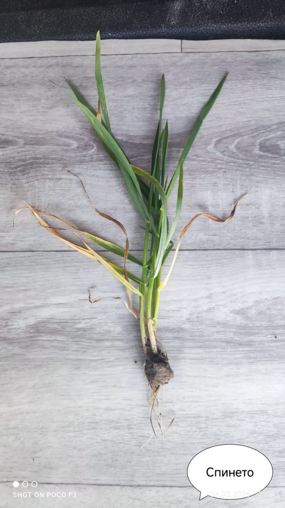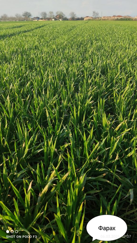 На база на почвен анализ, на всички опитни полета е направено предсеитбено торене с комбинирани торове и първо пролетно подхранване с азотни торове. Към настоящия момент пшеницата е във фаза активно братене. През този период, ако не е внесен мед съдържащ тор, обикновено се появяват признаци на недостиг на мед – завиване и побелели върхове на листата на пшеницата. За да избегнем появата на този проблем, на опитите във всички локации е внесен специално разработения листен тор Микроплант Мед Цинк Манган. Той комбинира важните за пшеницата микроелементи: